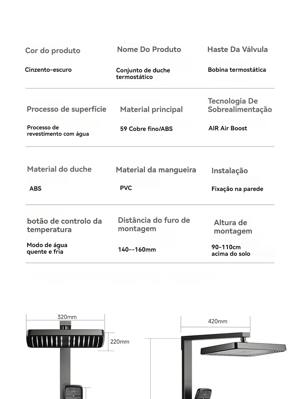 Conjunto de duche termostático